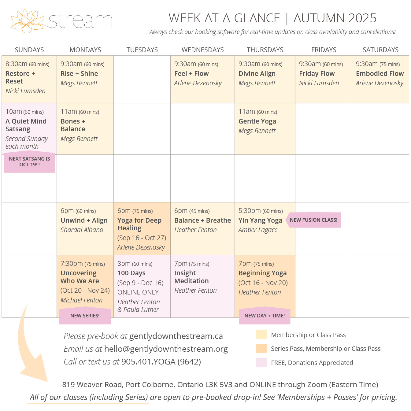 Come move, breathe, and settle into the season. Join us in Port Colborne or live on Zoom.